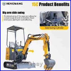 We have overseas warehouses in Los Angeles and New York, USA. Affordable, durable, and high-performance 2. 128,000 square meters of factory space and over 1,000 employees 3. Choosing us means choosing timely support and care. Compatibility: Compatible with all mini excavator brands 2. Durability: 15 years of professional production and over 10,000 continuous tests 3. Beginner-friendly: Remote installation tutorial ensures you’re up and running quickly 4. HW-15 Mini Excavator Features. The HW-15 mini excavator is EPA/CE/Euro 5 certified. Whether digging, grading, or processing, our mini excavator can handle it. Its versatility will bring more flexibility to your construction site. Our mini excavator is equipped with arm swing and chassis extension functions, as well as a detachable dozer. They help you work in extremely tight spaces without rotating the machine body, just dig. Our excavator can operate without blind spots in any space where a machine can move. Excellent Maneuverability: The meticulously designed HW-15 mini excavator easily navigates confined spaces, allowing you to effortlessly navigate complex construction site environments. Suitable applications: small construction sites, urban renewal projects, narrow space excavation, landscaping, and agricultural work.